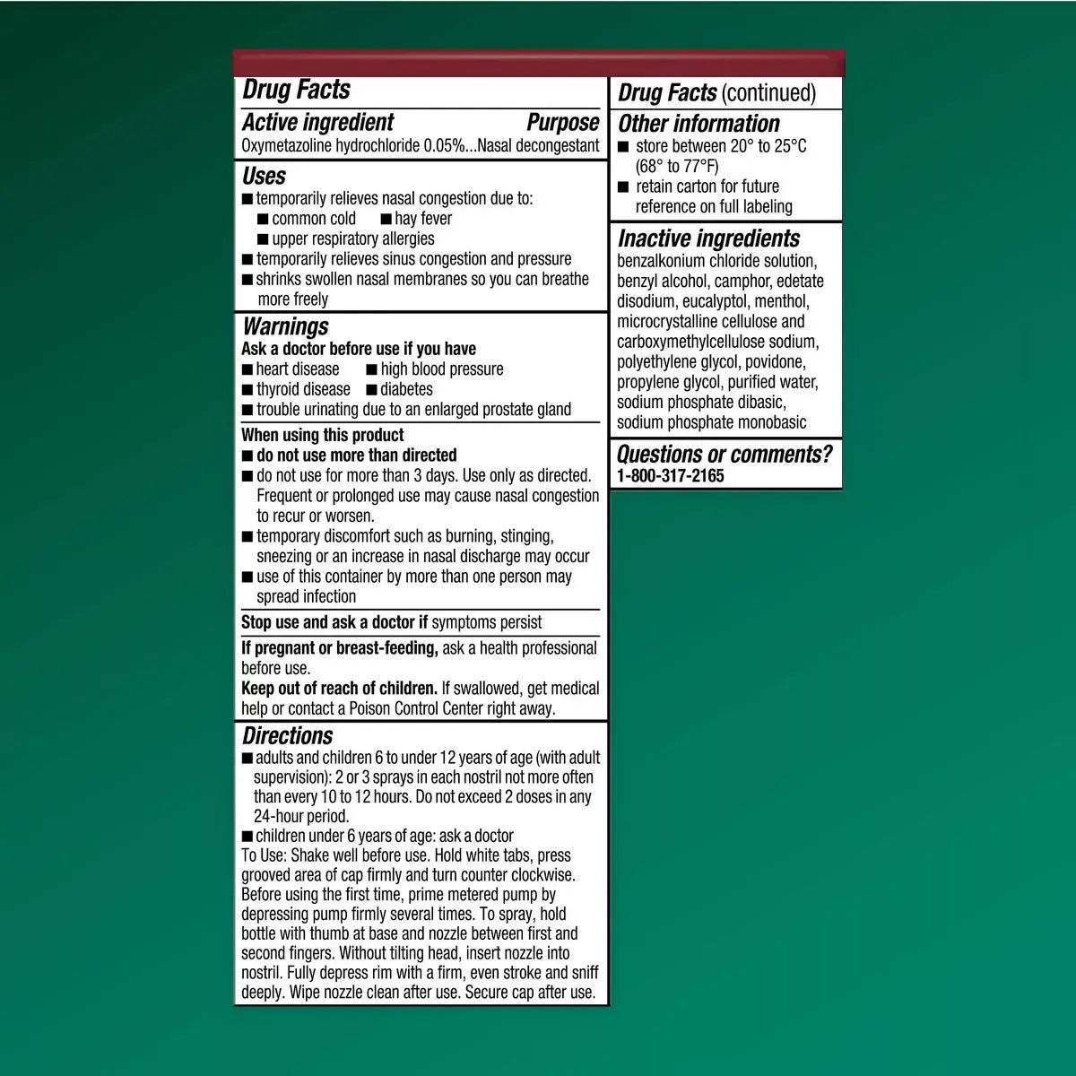 Maximum strength nasal decongestant spray with menthol starts working instantly