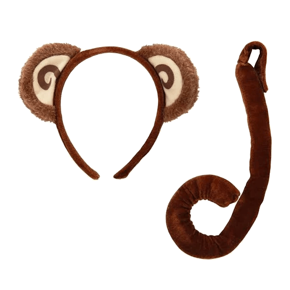 The Monkey Costume Accessory Kit by Vegas Party Favors features a brown headband with plush monkey ears and a separate tail, perfect for playful costumes with its whimsical design.